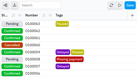 Track down problematic orders with Hantera's advanced search, filters, and sorting. Save the views you use most, share them with your team, and export results to CSV or Excel format whenever you need.