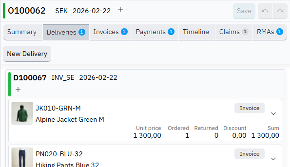 Update orders, change shipping method, create or split deliveries across multiple warehouses, and adjust products included in each delivery.